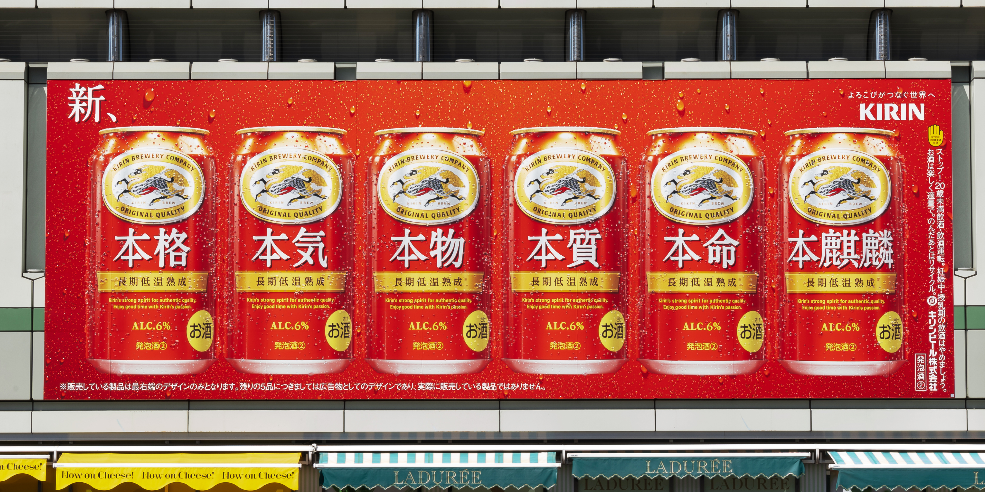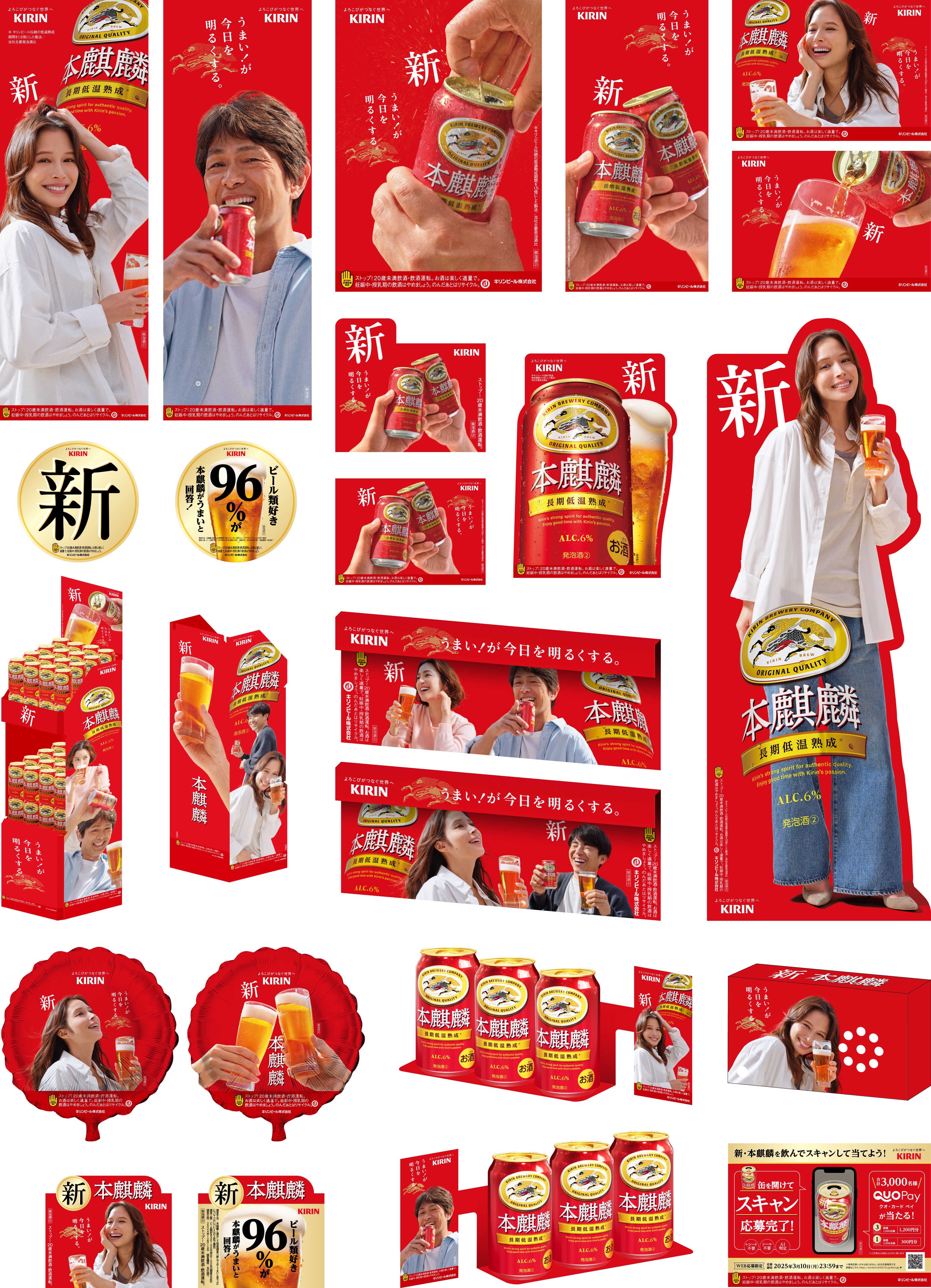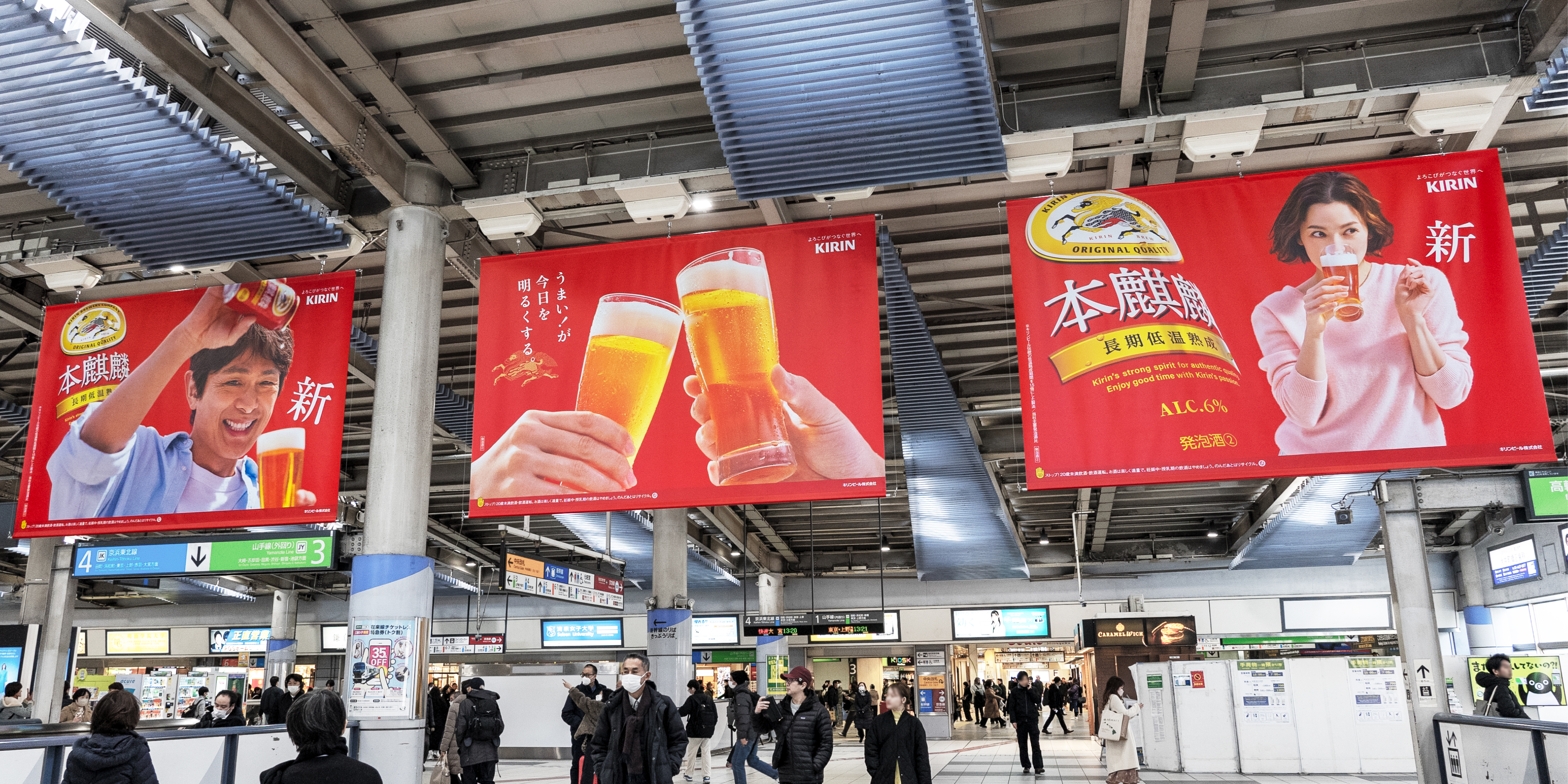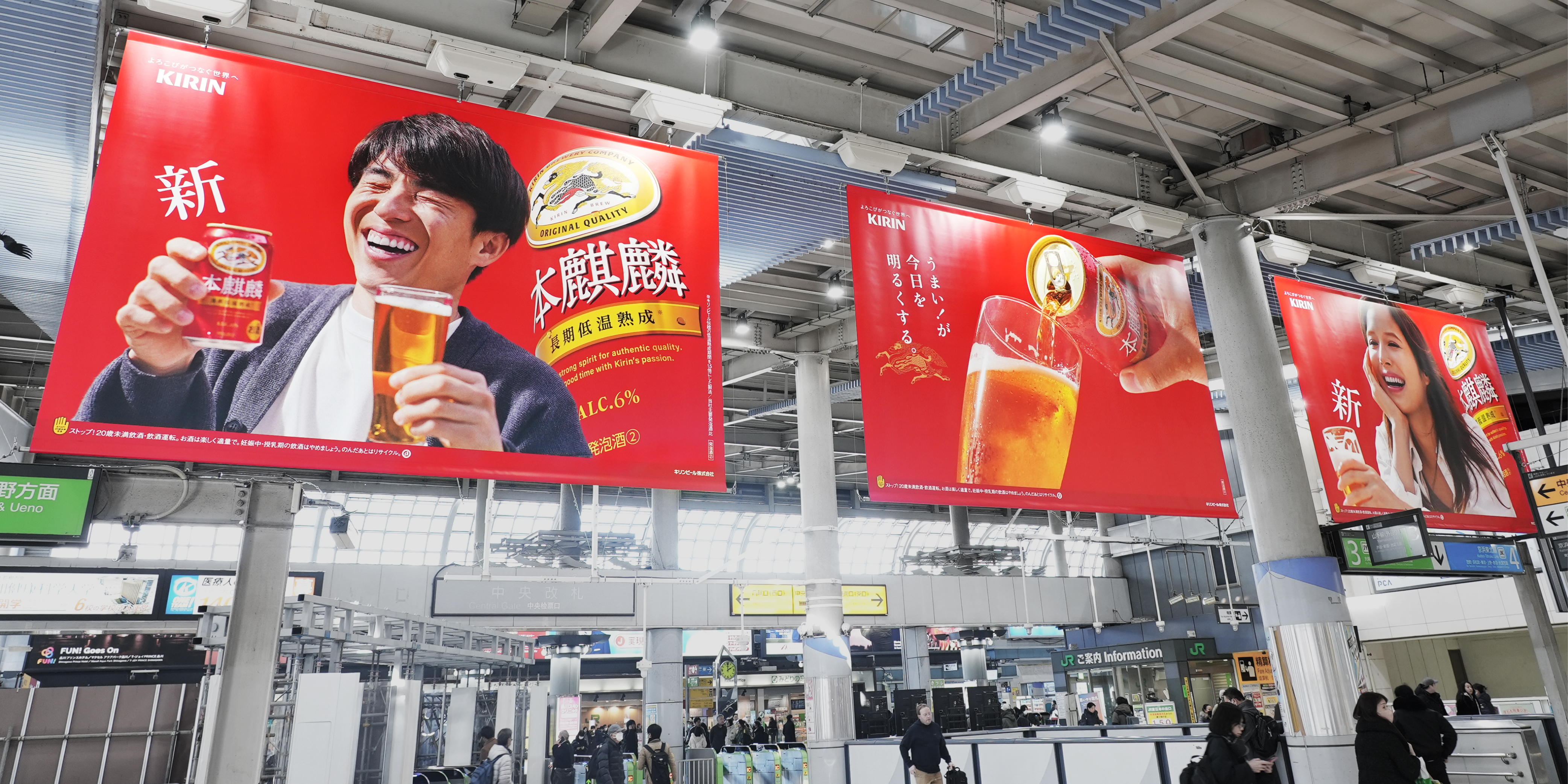With the renewal of “Hon-Kirin,” I was in charge of all aspects of graphic design. Posters were displayed not only in Shinagawa but also in Shinjuku Station, inside train cars, and at various stations. Beyond Tokyo, the campaign spread to Nagoya, Osaka, and even Kyushu, turning all of Japan red.