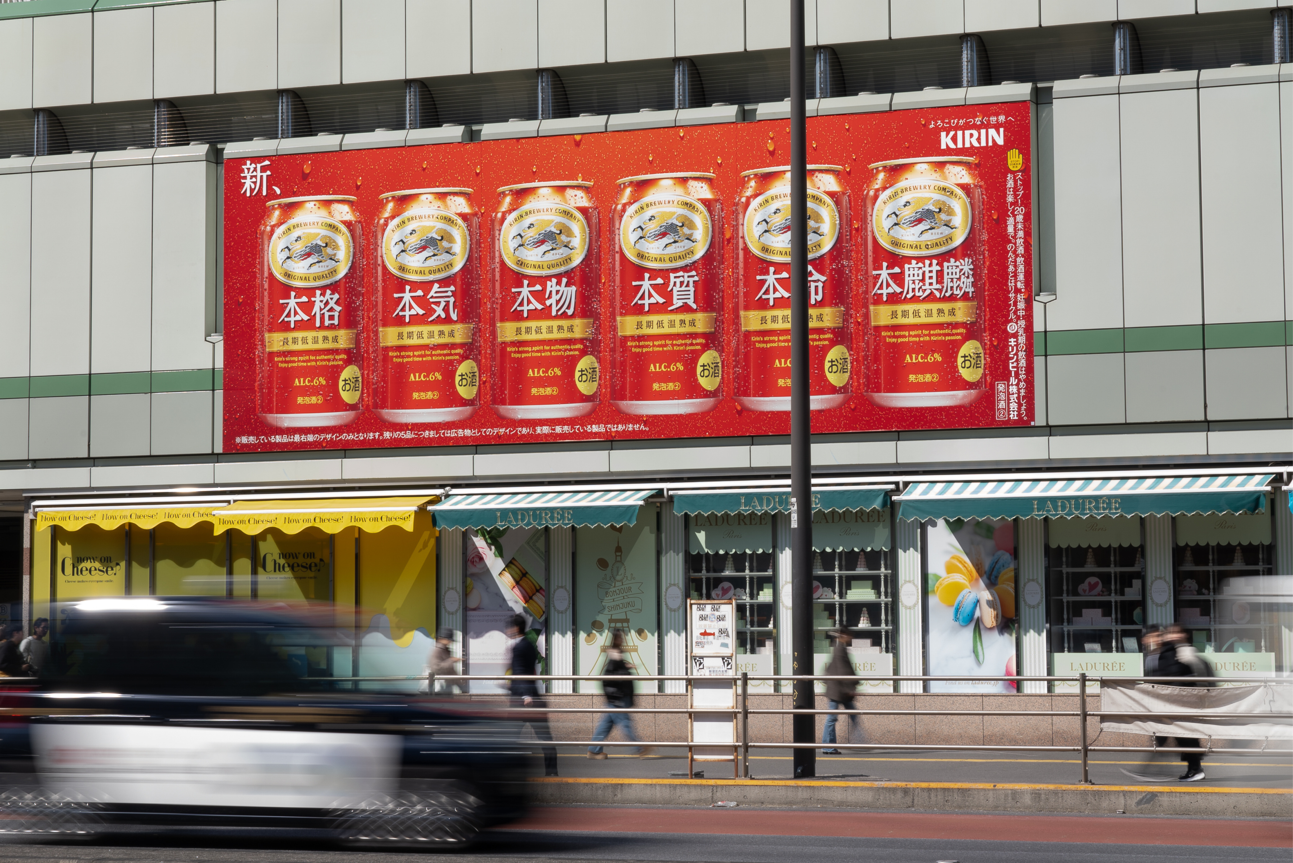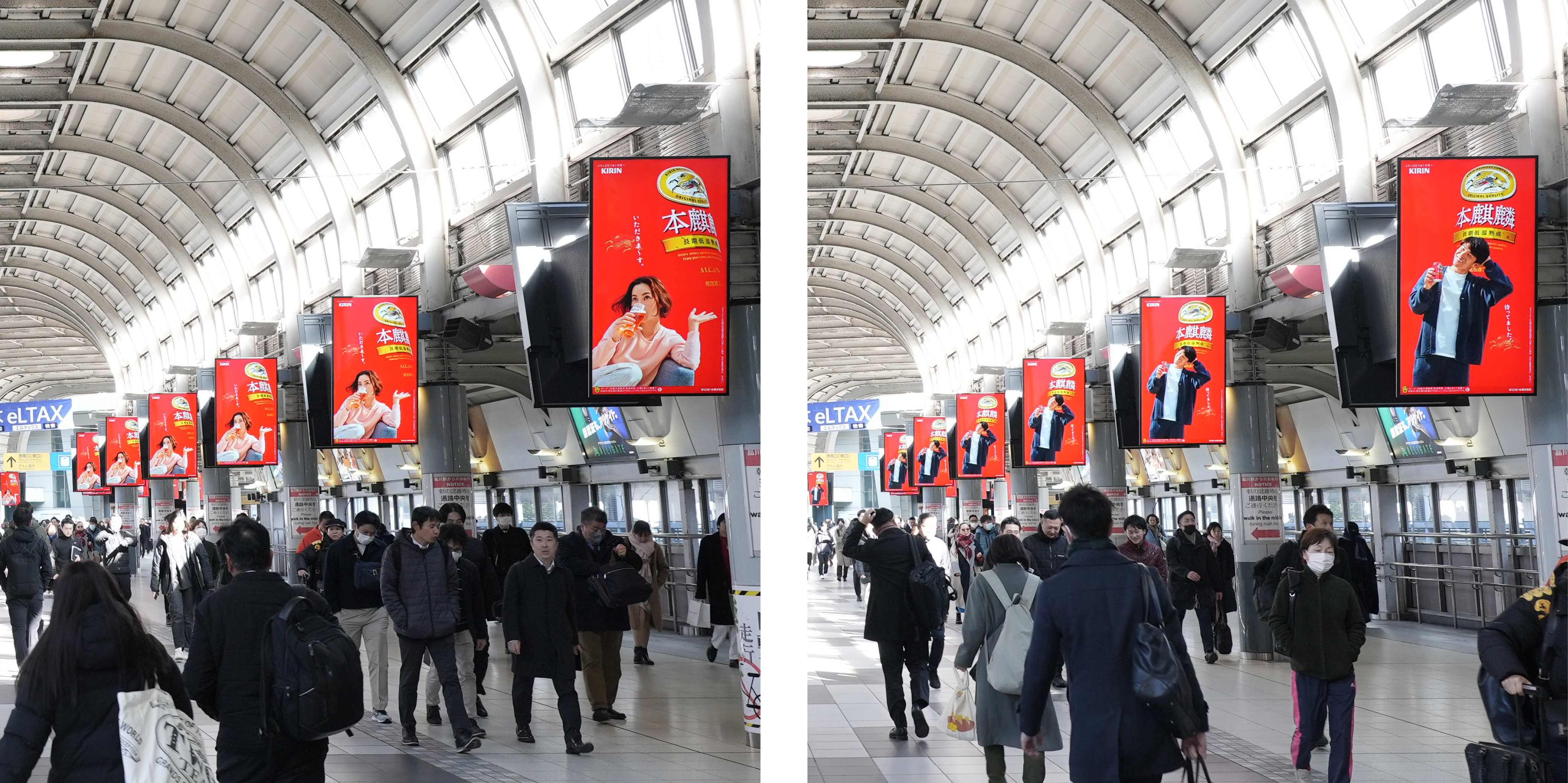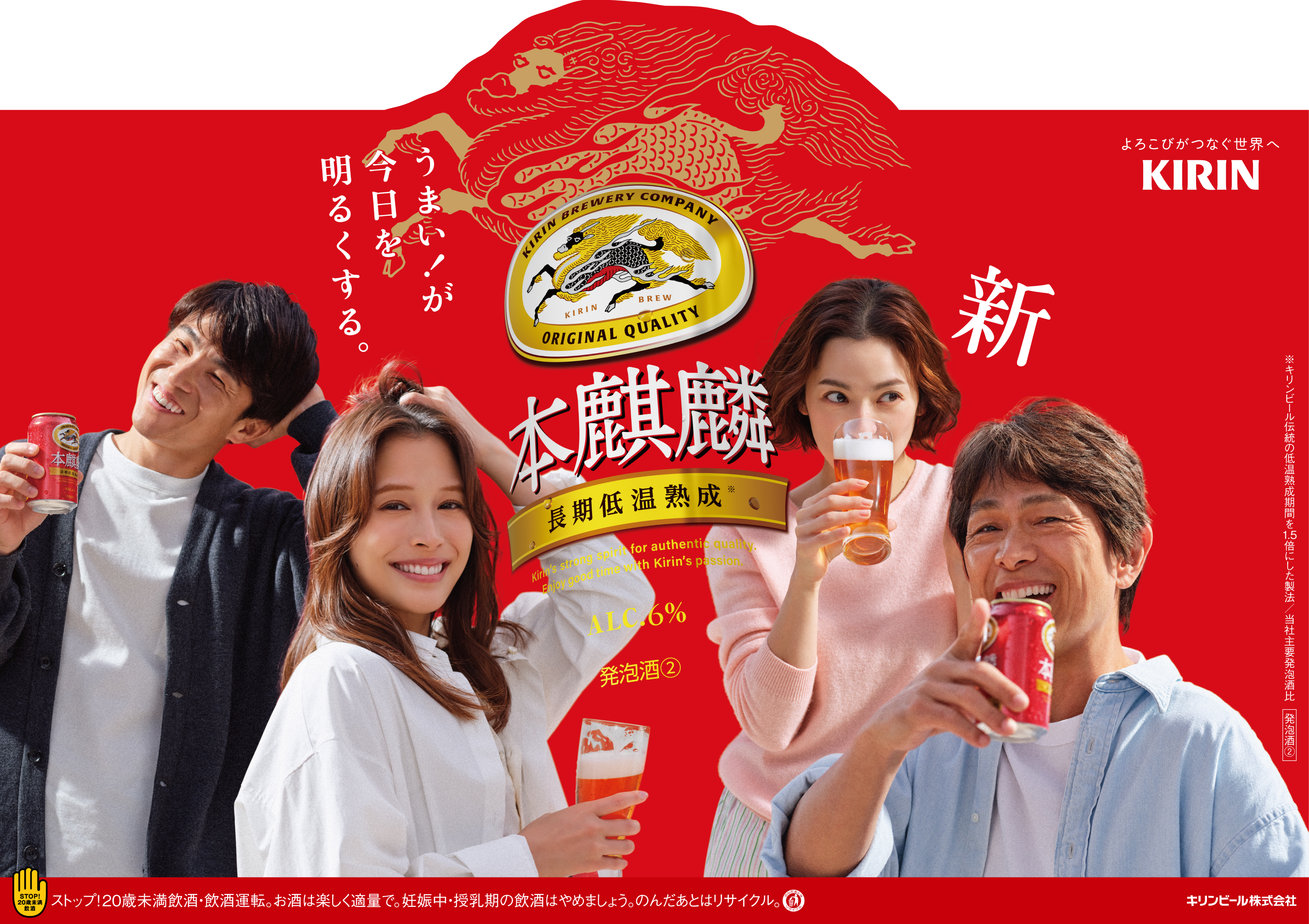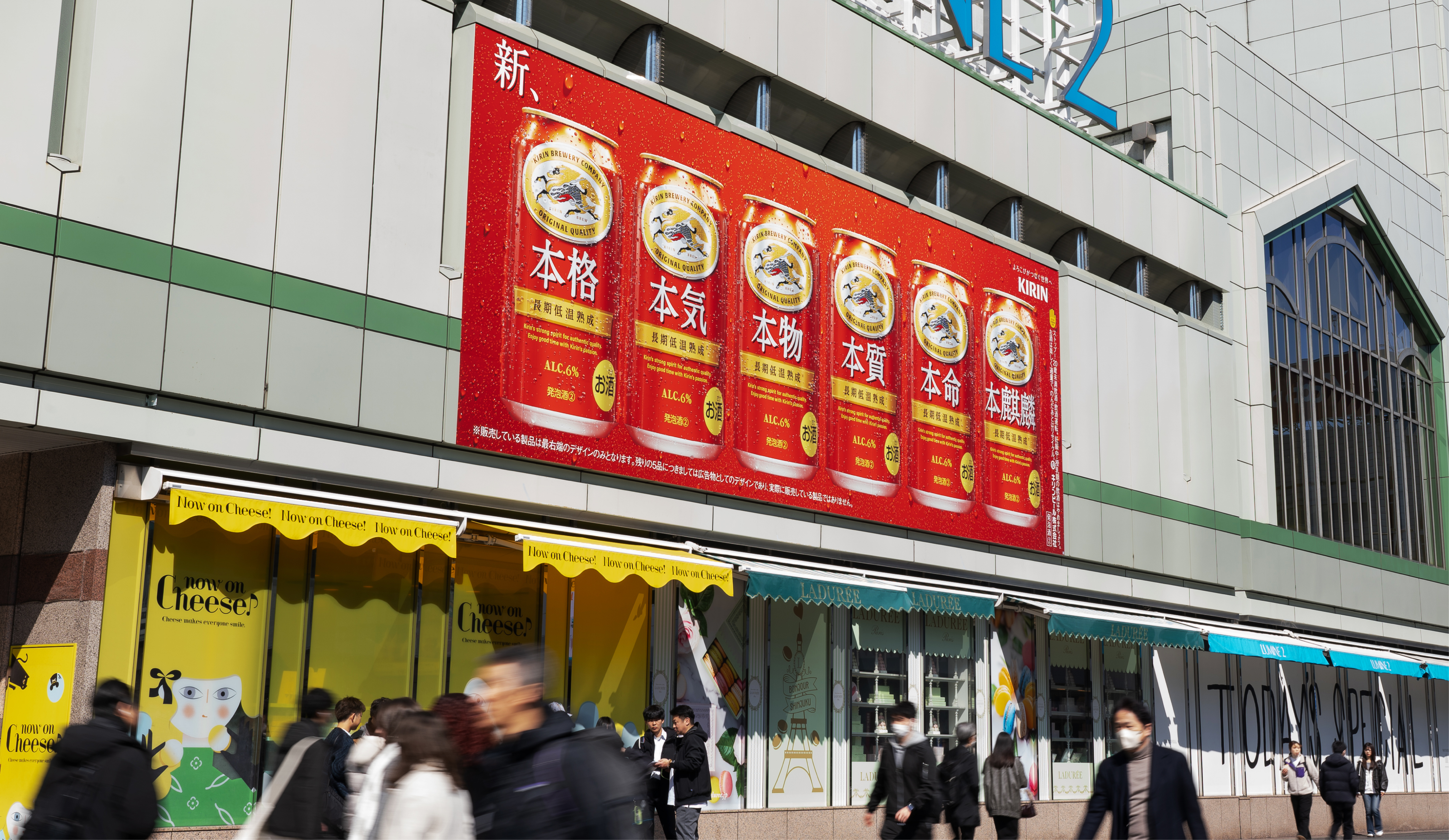 With the renewal of “Hon-Kirin,” I was in charge of all aspects of graphic design. Posters were displayed not only in Shinagawa but also in Shinjuku Station, inside train cars, and at various stations. Beyond Tokyo, the campaign spread to Nagoya, Osaka, and even Kyushu, turning all of Japan red.