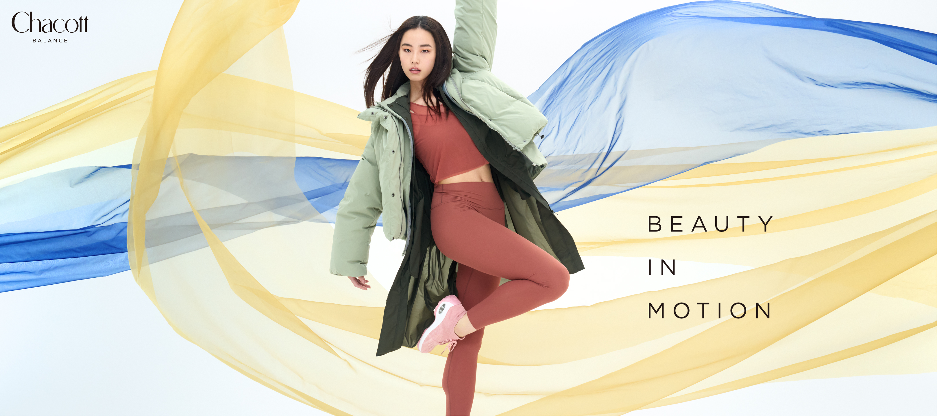 Chacotのスポーツウェアブランド「Chacott BALANCE」の2025 AWビジュアルを担当した。「BEAUTY IN MOTION」をメインテーマに、ダイナミックでしなやかなポーズと動きのあるカラフルな布を使って力強さの中にある女性らしい美しさを表現。同時に店舗で使用するカテゴリー分けやサポート力を示すピクトグラムもデザインした。